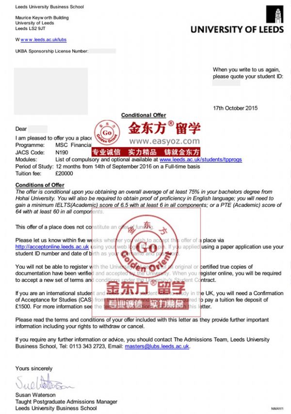 从以往的经验来看,虽然Leeds的申请要求不高,但是热门,竞争还是很大的。对于金融类的硕士课程,要求要有相关课程背景,如金融、数学、会计等。但语言要求不高,雅思6.5分,单项不低于6.0分即可。