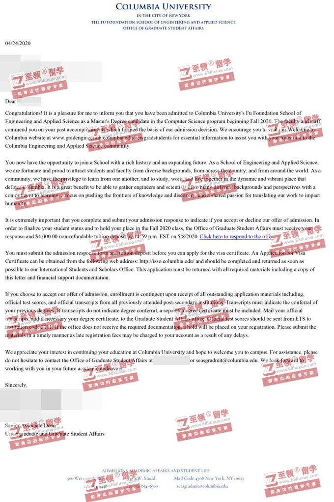 录取结果:Columbia University,MS in Computer Science哥伦比亚大学计算机科学硕士录取