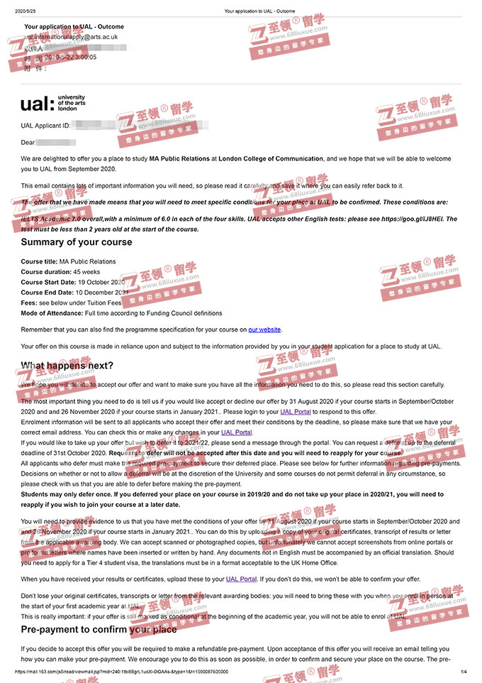 录取结果:UAL伦敦艺术大学,公共关系硕士